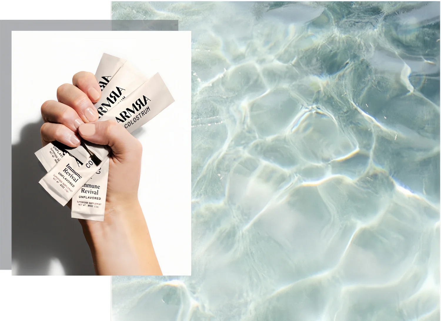 When you take ARMRA Colostrum™ you fuel your body withpotent prebiotics that support your microbiome, a host ofpeptides and antibodies that strengthen your immune barriers,and dozens of antioxidants and bioactive molecules thatoptimize cellular pathways throughout your body - forsynergistic revival of your whole body health
